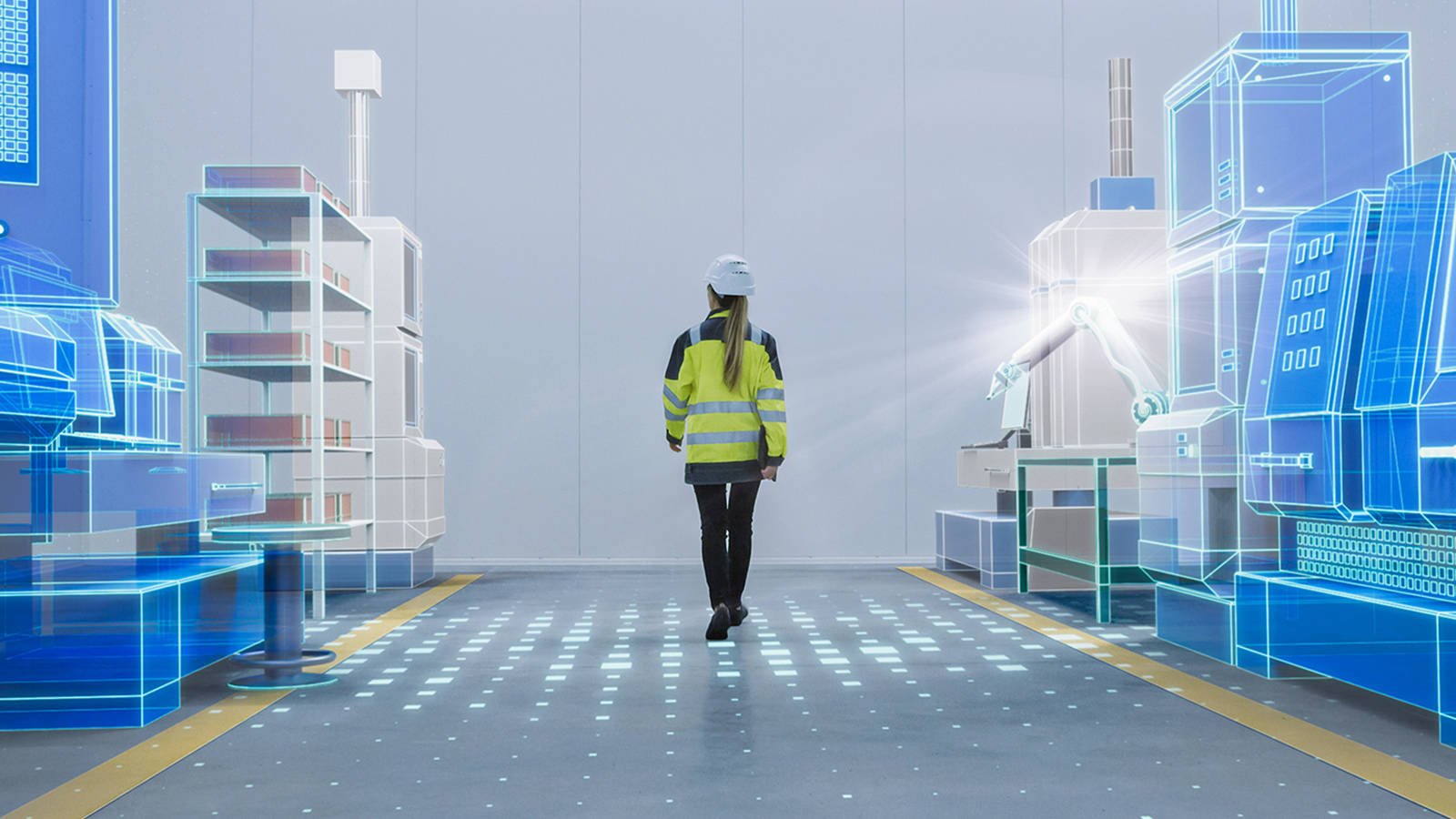 A worker in a hardhat using forging technology